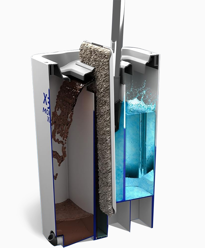 X3 Mop XL is a device that can separate dirty water and clean water. The newly upgraded product comes with a scraper and comb for cleaning, making it easy to remove hair and stains.